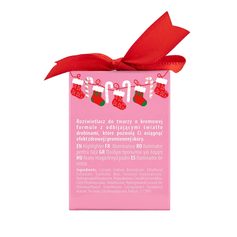 Icing Glow Creamy Highlighter is a creamy highlighter that brings festive charm and a holiday glow to your makeup—just like the first star in the winter sky. Available in two magical shades—Snowflake and Shooting Star—it subtly enhances your cheekbones, giving your face a healthy, radiant glow. Its buttery-light formula melts seamlessly into the skin without weighing it down, while delivering a long-lasting illuminating effect. The warm, festive scent adds joy to your daily routine, and the red, bow-adorned holiday packaging makes it a perfect gift.