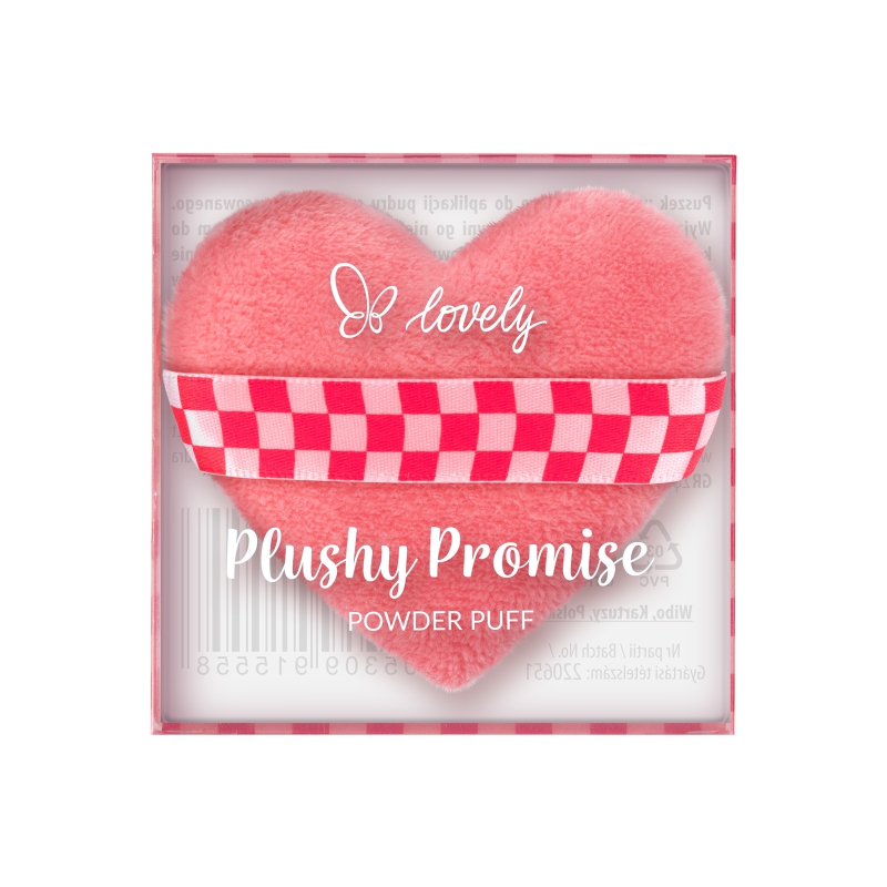 Plushy Promise es una borla en forma de corazón que facilita la aplicación uniforme de polvos sueltos o compactos. Su forma única la hace ideal para baking y para zonas de difícil acceso. Distribuye el producto de manera uniforme dejando la piel lisa sin efecto máscara.