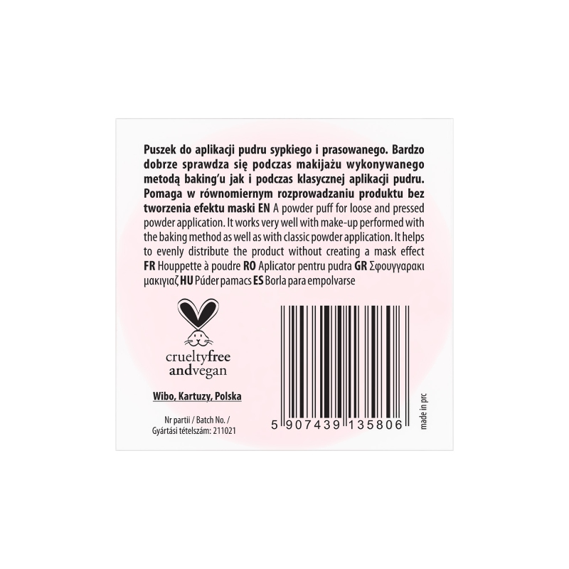 Fluffy Powder Puff to miękki, puszysty aplikator idealny do precyzyjnej i równomiernej aplikacji pudru sypkiego lub prasowanego.