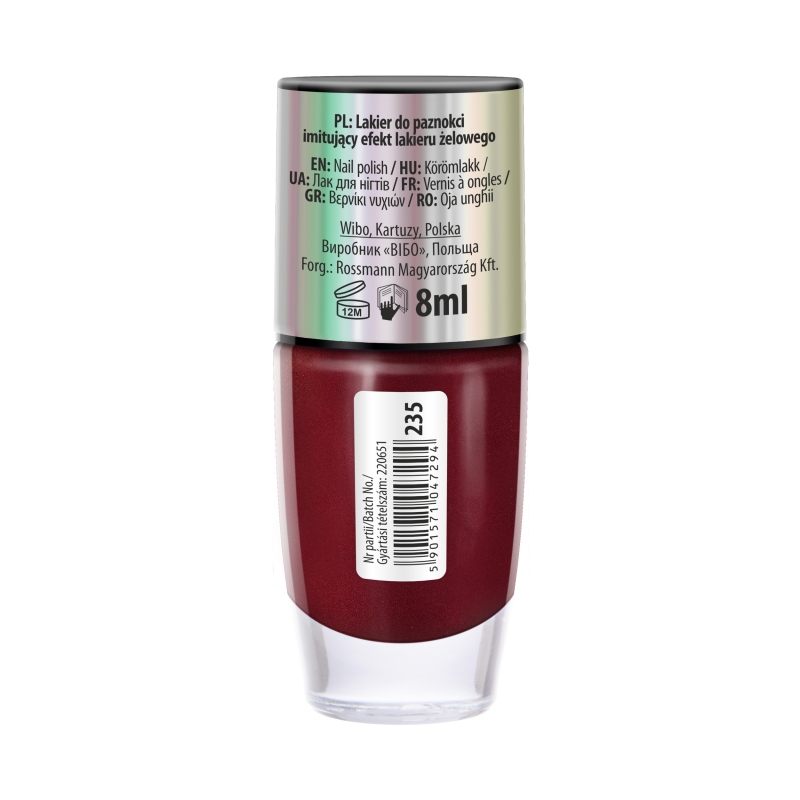 Gloss Like Gel to seria lakierów do paznokci o żelowym, intensywnie błyszczącym wykończeniu, które nadaje paznokciom efekt luksusowego manicure bez konieczności używania lampy. Dzięki specjalnej formule lakiery te łączą w sobie trwałość oraz głęboki połysk, który utrzymuje się przez długi czas. Kolory z serii Gloss Like Gel cechują się intensywnością oraz głębią, a aplikacja jest łatwa i przyjemna dzięki dobrze zaprojektowanemu pędzelkowi. To idealny wybór dla osób pragnących uzyskać efekt profesjonalnego manicure w domowych warunkach.