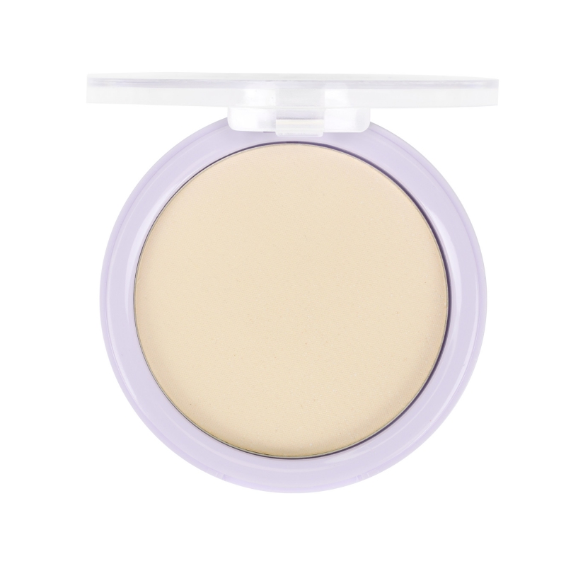 Nakładaj puder prasowany na twarz za pomocą puszka lub pędzla, szczególnie na strefy wymagające matowienia lub utrwalenia makijażu.